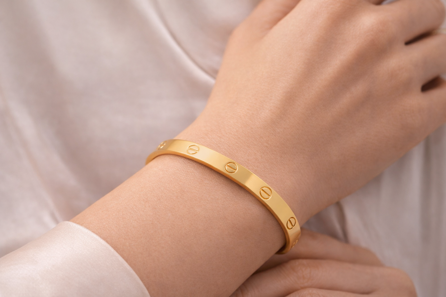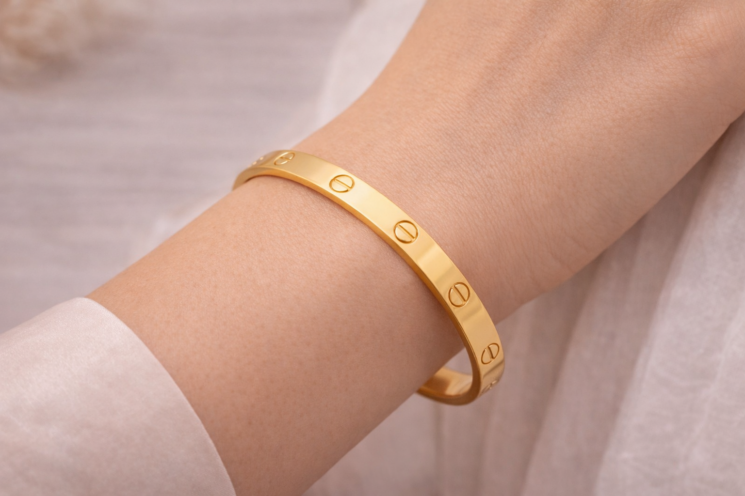 Crafted from premium stainless steel, this bracelet is rust-resistant, tarnish-free, and designed to maintain its gold color and shine over time. Its slim, elegant structure makes it perfect for everyday wear or layering with other bracelets.