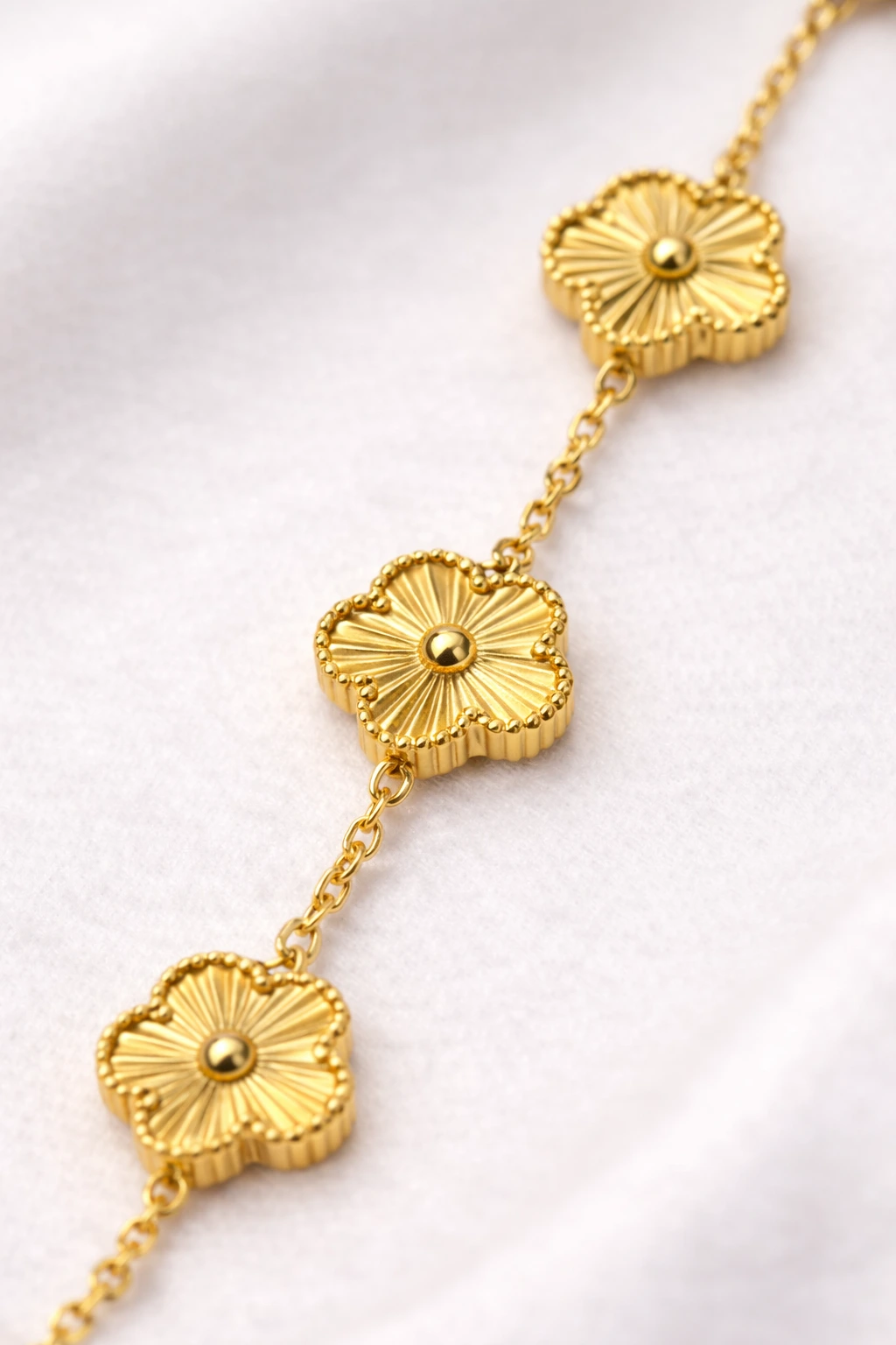 A refined stainless steel bracelet set featuring delicate clover motifs and a sleek gold chain design — a perfect blend of elegance, versatility, and everyday luxury.