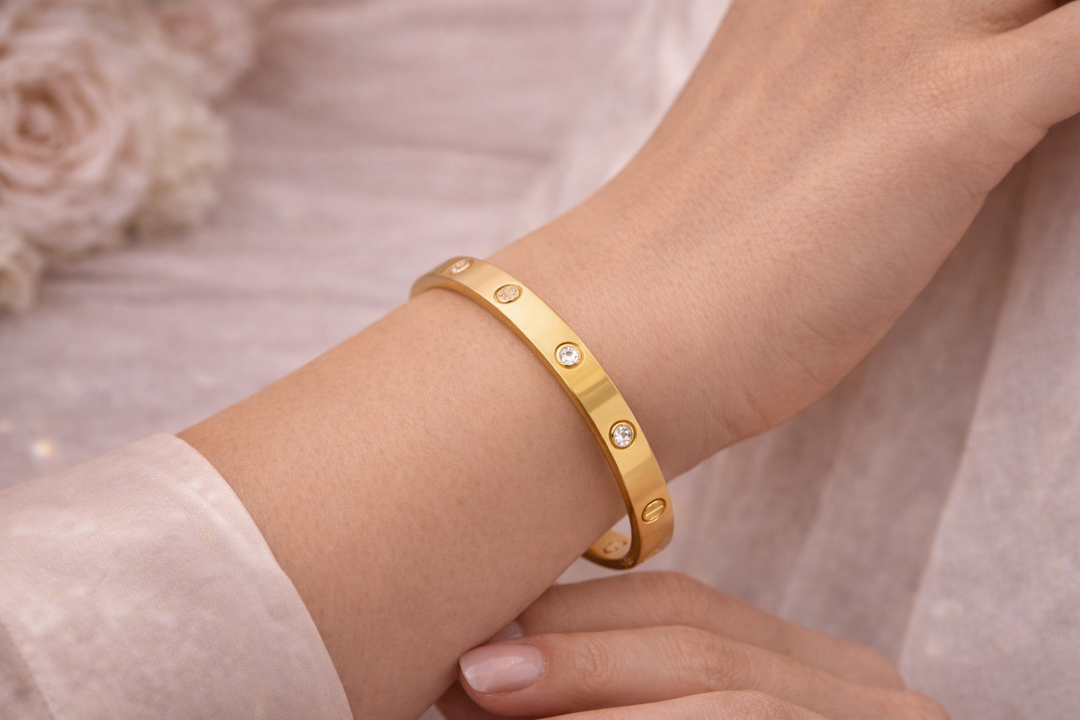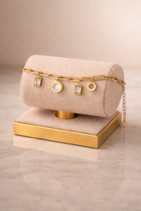 Crafted from high-quality stainless steel, this bracelet is rust-resistant, tarnish-free, and designed to maintain its gold color without fading. Its sleek and structured silhouette makes it perfect for everyday elegance or special occasions.