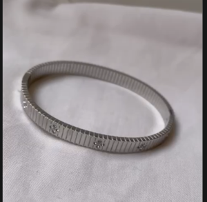 Elegant stainless steel screw-design bangle with sparkling crystal details.